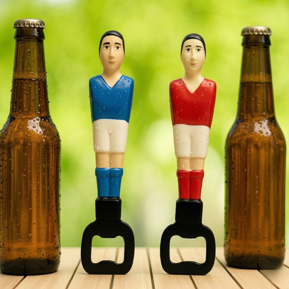 Ce décapsuleur en forme de joueur de babyfoot est l’accessoire incontournable pour tous les passionnés de football et d’apéros entre amis. Conçu en résine résistante et agréable au toucher, il reproduit à la perfection l’apparence emblématique des joueurs de babyfoot, avec deux versions disponibles : rouge ou bleu.